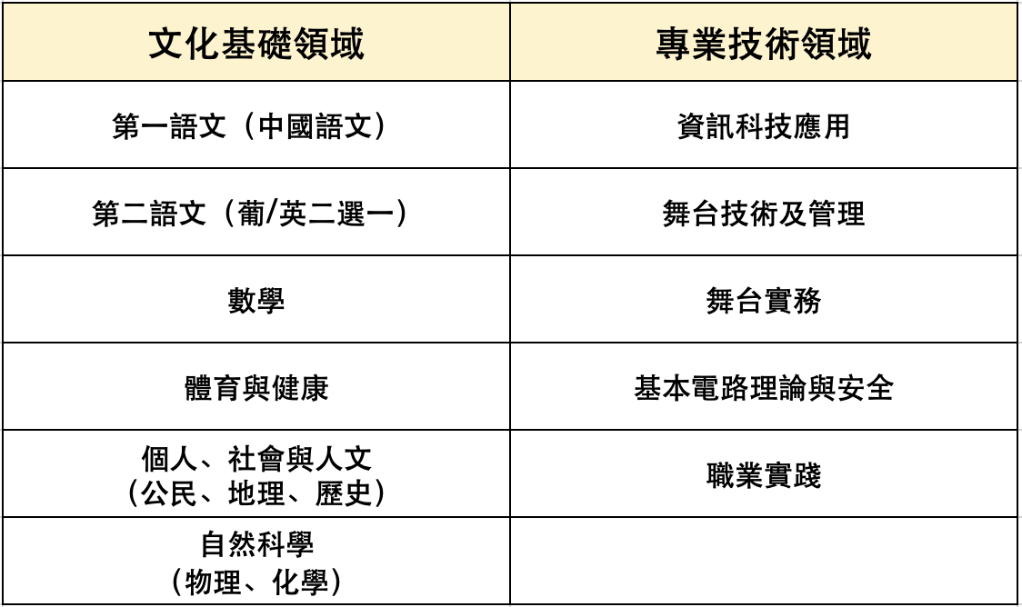 課程旨在培育具備中等程度的舞台技術及活動製作範疇的專業技術人員,學生通過三年的學習,具備協作舞台活動、演唱會、劇場等方面的相關專業知識和技術水平。